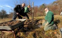 Uwe Wimmer war in den vergangenen Wochen ausgesprochen fleißig. Hat über fünf Dutzend Bäume im Kirdorfer Feld gepflanzt. Nicht, dass der Mann das nicht gerne getan hätte immerhin ist er Baumpfleger und Mitglied der Interessengemeinschaft Kirdorfer Feld (IKF), und das Bäumepflanzen ist ihm nicht nur Beruf, sondern auch irgendwie Berufung. "Damit setzen wir unsere Arbeit für das Kirdorfer Feld und dessen Erhalt fort", sagte Wimmer, als er gestern die letzten 11 von 65 Obstbäumen pflanzte darunter Bühler Zwetschgen, Kirschen, Mirabellen, Quitten und Walnussbäume.
