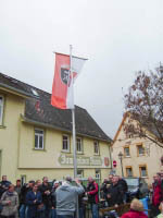 Nachdem am 30.11.2013 die Kirdorfer Fahne am Bornplacken zum Überwintern eingeholt wurde, war es am 22. März 2014 an der Zeit, sie wieder zu hissen und damit die Festsaison 2014 zu eröffnen. Um 17 Uhr trafen sich rund 50 Mitglieder verschiedener Vereine auf dem Bornplacken, um in einer kleinen Feierstunde dabei zu sein. Pünktlich mit dem letzten Glockenschlag des Kirdorfer Doms ergriff der Vorsitzende des Vereinsrings Hans Leimeister das Wort und gab die Fahne zum Hissen frei. Der Spielmannszug des CV Heiterkeit besiegelte die Zeremonie mit ein paar Liedern aus seinem Repertoire.