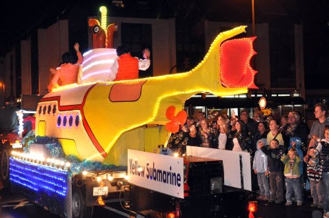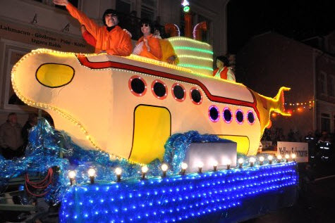 In den Musikfilm, aber auch mit Bösewichtern, wechseln die echten und falschen Schwestern des Kirchhortes Herz Jesu Gartenfeld mit „Sister Act“. In der Abendstunde besonders schön leuchtet das poppig-gelbe Unterseeboot der Interessengemeinschaft Kirdorfer Feld, eine höchst originelle Umsetzung des Beatles-Klassikers.