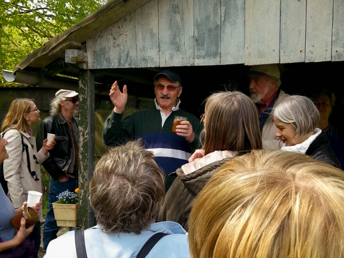 Zum Abschluß lud Armin Johnert die Gruppe zu einem Gläschen Apfelwein, Apfelsaft oder Wasser ein und es wurden weitere interessante Gespräche rund um das Kirdorfer Feld und die Wildkräuter geführt.