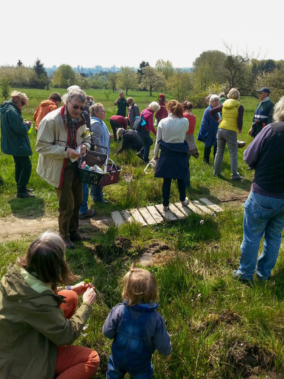 Dann startet die Gruppe und entdeckte neben den Kräutern für das Omelett, noch weitere Wald- und Wiesenkräuter, wie Beinwell, Schafgarbe, Pimpernelle oder Kresse.