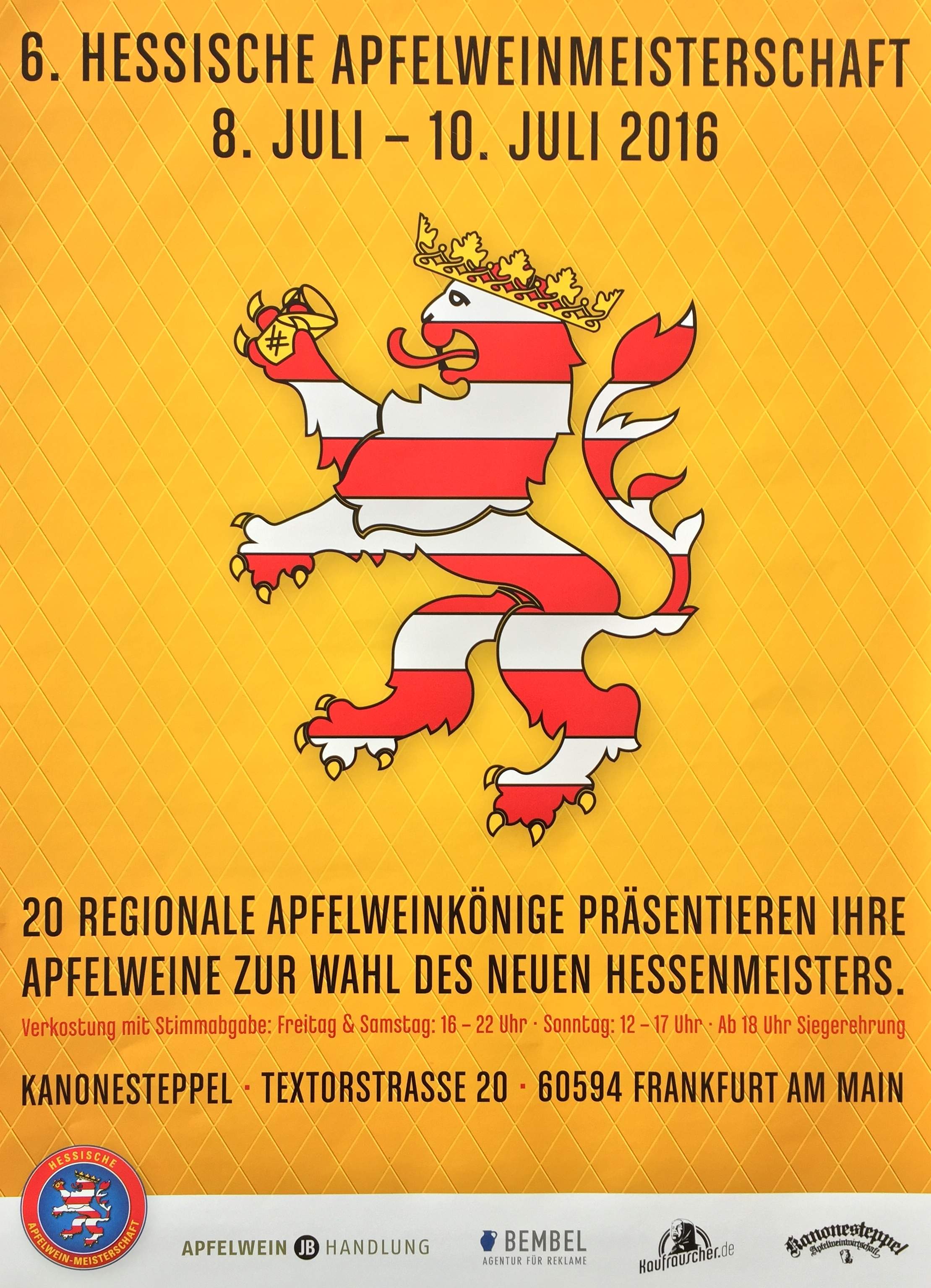 Wer also gerne das hessische Nationalgetränk verkosten und dabei unseren König unterstützen möchte, kann dies ab 8.7. im "Kanonesteppel" in der Textorstraße tun.