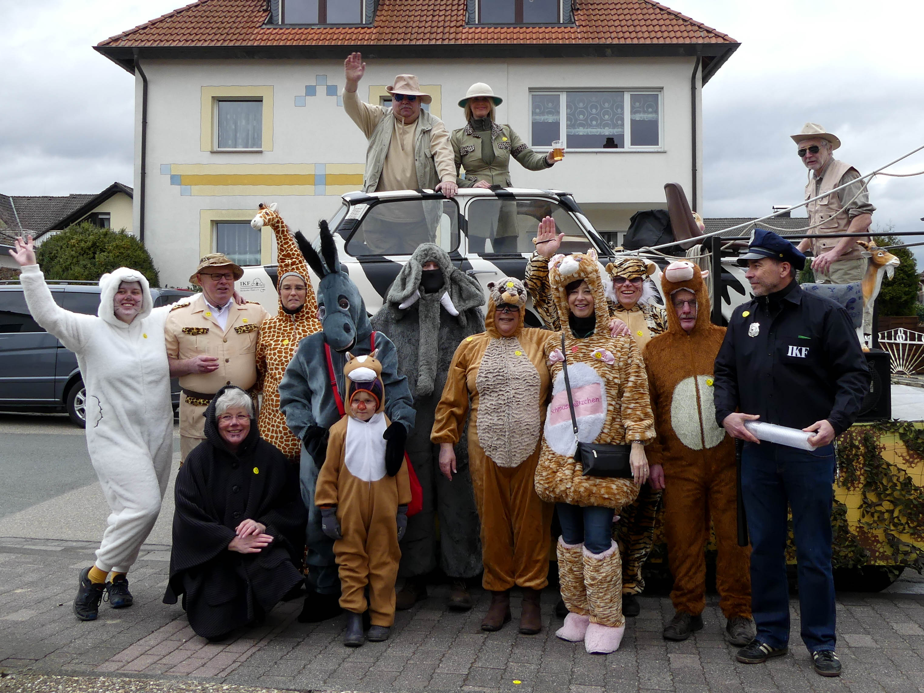"Safari im Kirdorfer Feld" war das Motto des diesjährigen Fastnacht-Festzugwagens der Interessengemeinschaft Kirdorfer Feld (IKF). Rund um den Trabi im Safari-Look versammelten sich zahlreiche Helfer der IKF, um in Safari- oder Dschungelkostümen am großen Kirdorfer Festzug mitzulaufen. Ob Löwe, Tiger oder Eisbär, die ganze Tierwelt war vertreten. Auch in diesem Jahr waren trotz des durchwachsenen Wetters wieder zahlreiche Zuschauer gekommen, um den Fastnachtszug zu feiern - ein toller Lohn für die Akteure und die Festwagenbauer.