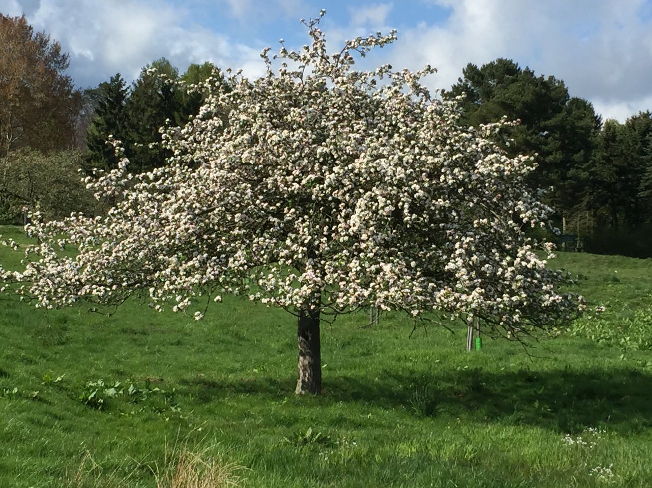 Während die Steinfrüchte wie Kirschen, Mirabellen und Zwetschgen bereits den Höhepunkt ihrer Blüte hinter sich hatten, standen in Äpfel und Birnen in voller Blüte. Unzählige Fragen zur Biologie und der Natur des Kirdorfer Feldes sowie seiner Geschichte konnten vom 2. Vorsitzenden der IKF Michael Korwisi, der die Führung leitete, beantwortet werden.