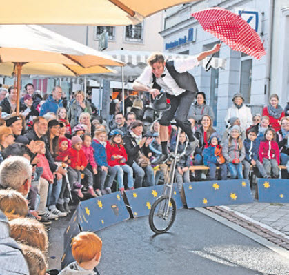 Auch die jüngsten Besucher kamen auf ihre Kosten. Auf der Louisenstraße begeisterten verschiedene Clowns wie "magickoko" mit Luftballons und frechen Tricks die Kleinen und Großen. Letztere hatten vor allem ihren Spaß bei der Show von Hironimus. Einige Eltern kam die Ehre zuteil, ihm bei seinen Nummern zu assistieren, zur Belustigung des jüngeren Publikums. Während Hironimus auf ein hohes Einrad kletterte, sollten Johann und Konstantin ihm dabei helfen. Das bewahrte sie jedoch nicht vor spitzbübischen Bemerkungen. Hironimus hatte eben den Schalk im acken sitzen und es wurde viel gelacht. Fröhlich ging es aber überall zu. Ob in den Louisen Arkaden auf der Louisenstraße oder in all den geöffneten Geschäften. Es wurde geschaut, gebummelt, und eingekauft. Aber vor allem wurde viel geredet. Ein toller Tag für alle Beteiligten. So ist der Erntedankmarkt in Bad Homburg damit zu Recht ein "Muss" im herbstlichen Terminkalender.