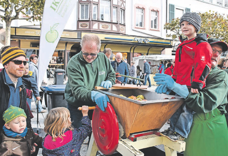 Akustisch ruhiger, aber nicht weniger lebhaft ging es an einigen Tiergehegen zu. Ob Esel, Schafe oder Ziegen - sie wurden von Besuchern jeder Altersgruppe beobachtet und gestreichelt. Zwischen Kürbissen und Äpfeln gab es die Möglichkeit, beim Keltern zuzuschauen. Die Kelterei Possmann presste die Äpfel vor den Augen der Marktbesucher aus. Frischgepresster Süßer, ein Muss bei jeder hessischen Veranstaltung im Herbst. In diesem Bereich sorgte die Interessengemeinschaft Kirdorfer Feld für besonderes Aufsehen. Ihr Süßer wurde mit einer historischen Apfelpresse produziert. Generell gab es im handwerklichen Bereich einiges zu sehen und zu lernen, zum Beispiel bei der Stuhlflechterei. Oder auch bei Kuhara, wo Laubsägearbeiten hergestellt und verkauft wurden. Hier lockten Individualität und Qualität die Besucher an. Genauso beim Stand von Rosenkunst. Ein angenehmer Duft von Rosen und Zimt umwehte die Ware. "Wir machen alles selbst mit viel Liebe zum Detail. Zu finden sind wir nur auf Handwerkermärkten, einen Laden haben wir nicht. In Bad Homburg sind wir jedes Jahr. Und wie immer ist der Markt super besucht; bis abends geht das nonstop" sagte Barbara Fischer. "Wir sind spezialisiert auf Rosenkissen mit sehr hoher Qualität. Die Leute registrieren das. Es ist wie immer toll hier. Wir freuen uns aufs nächste Jahr." Ähnliche Erfahrungen machte auch Gisela Kofler vom "Hof Kofler": "Es ist gut besucht. Heute Morgen ging es gleich los, da hatten wir nicht mal richtig ausgepackt." Die bei Kofler angebotenen Holzfiguren gibt es sonst ebenfalls nirgendwo zu kaufen. Aber der Erntedankmarkt bestach nicht nur durch Individualität und Originalität, sondern auch durch die Vielfalt der Stände. Ob Leckermäulchen oder Feinschmecker - für jeden kulinarischen Geschmack war etwas dabei: von Crepes über Cupcakes bis hin zu Käse und Wurst.