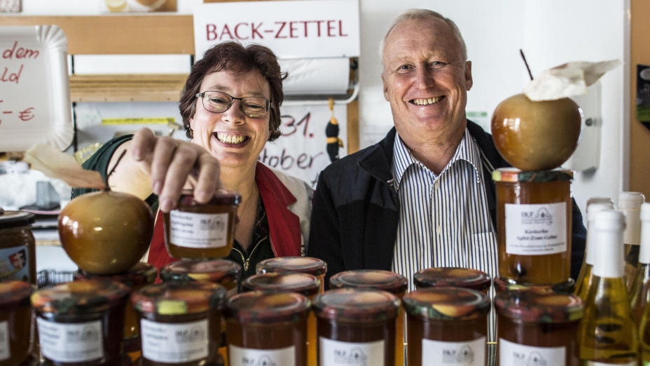 Egal, ob beim Secco die Birne oder Quitte hineinperlt, ob Gelee mit Calvados, Zimt oder Holunderblüte veredelt wird, immer ist die heimische Apfelvielfalt fundamental. Seit der Gründung 2006 arbeiten vier Dutzend Aktive inmitten einer uralten Kulturlandschaft, umgeben von Abertausend Obstbäumen. Michael Korwisi vermutet hier auch "viele alte, noch unentdeckte Apfelsorten". Was er aus den jüngsten Herbsttagen gerettet hat, liegt im Korb: Gravensteiner und Brettacher, Boskoop und Sternrenette. Die Spätblühenden also - was früh erblühte, verging im Frost weniger Aprilnächte.