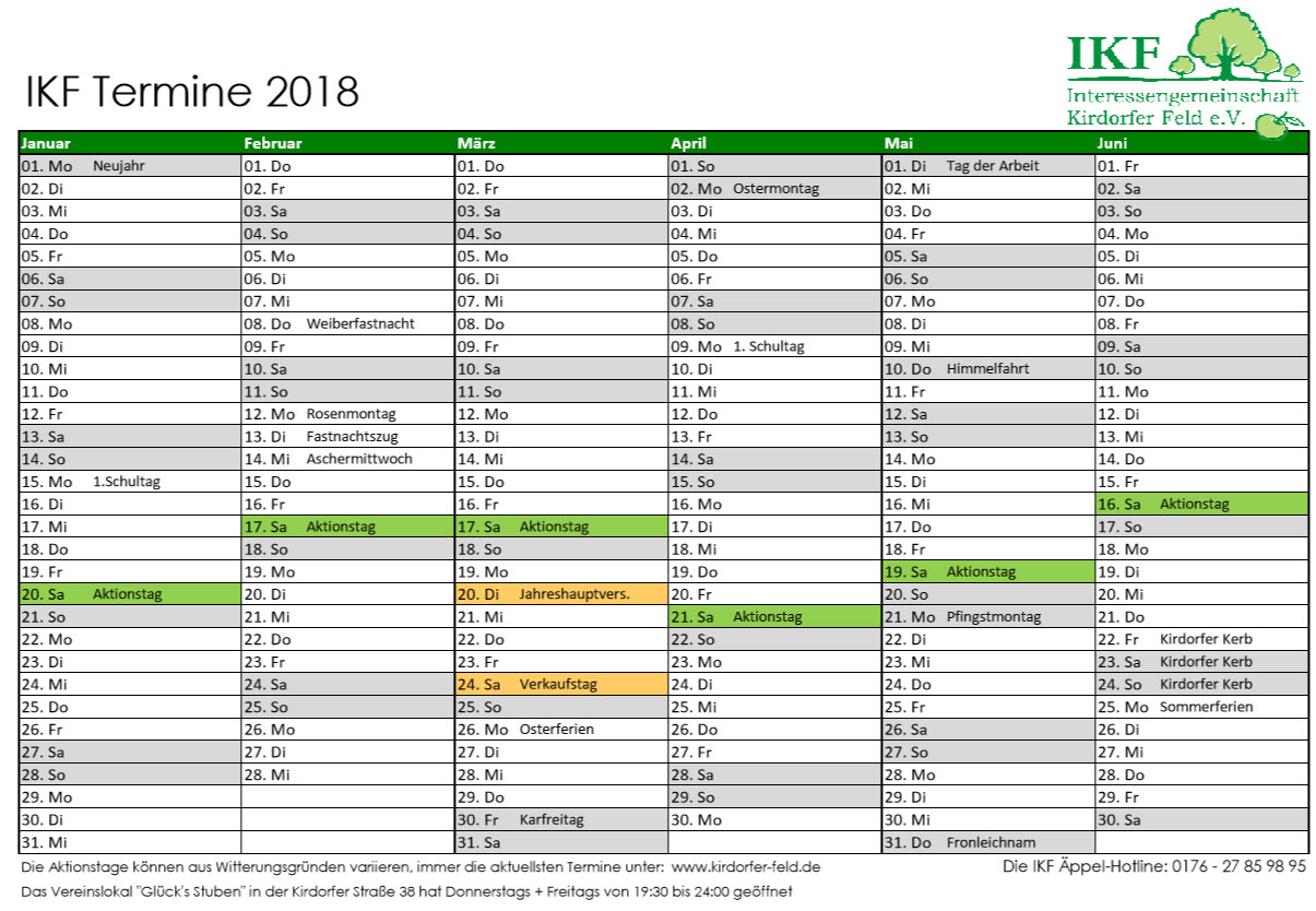Auch für das Jahr 2018 gibt es wieder einen Kalender mit allen Terminen der Interessengemeinschaft Kirdorfer Feld.