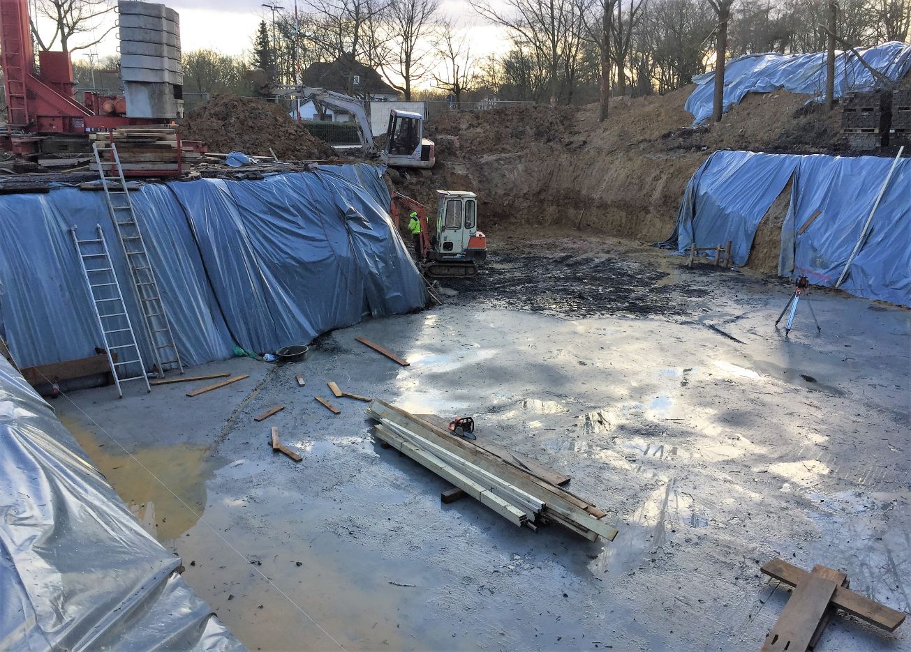 In der dritten Januarwoche wurden die Bauarbeiten im Usinger Weg 102 wieder aufgenommen. Trotz der sehr nassen Witterung (und wegen guter Pumpen) blieb die Baugrube von einer Überschwemmung verschont. So konnte inzwischen ein Teil des Kellerbodens befestigt und mit dem Bau der Verschalung begonnen werden. Die Erdarbeiten sollen in der 3. Woche enden. Zurzeit wird lediglich noch im Bereich der geplanten Regenwasserzisterne vorne am Usinger Weg mit kleinen Baumaschinen gebaggert. In der 4. Woche sollen die Bewehrungen verlegt und die Bodenplatte gegossen werden.