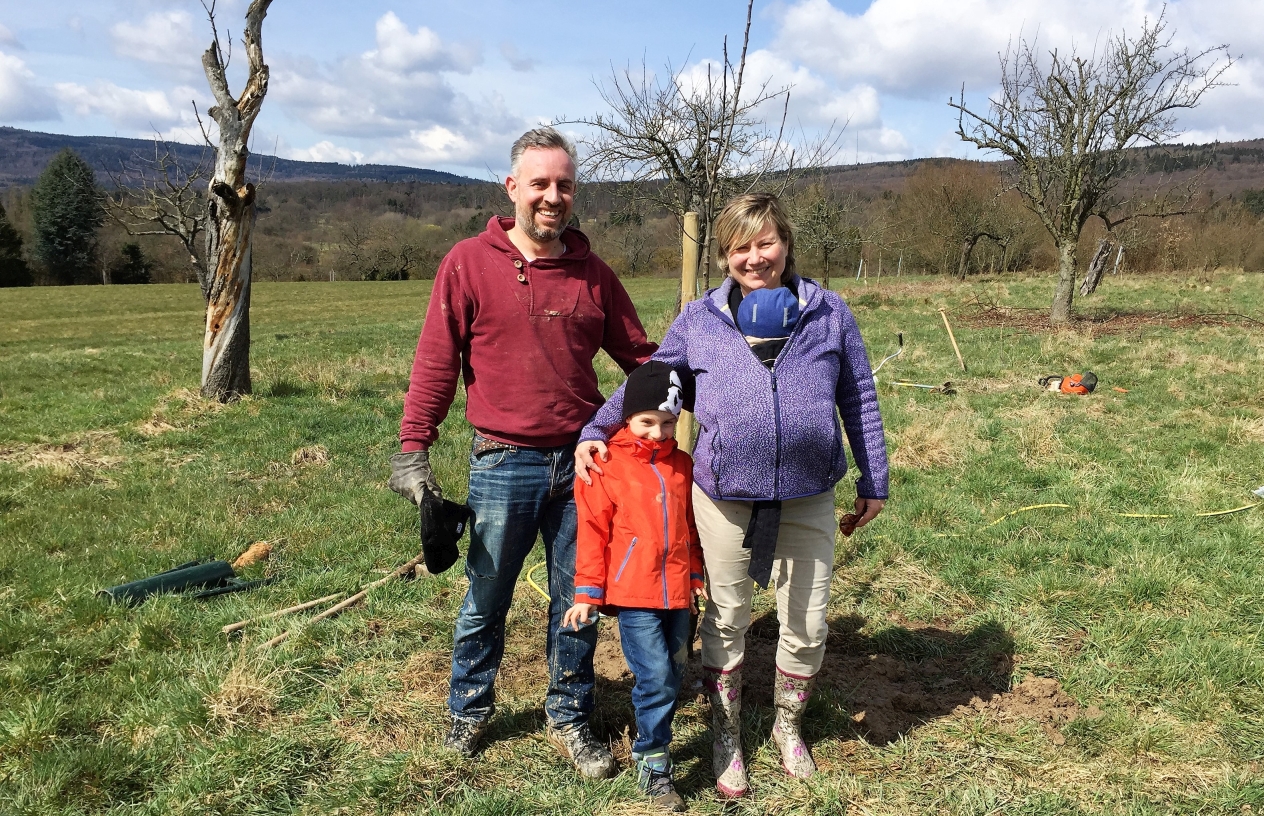 Jetzt ist regelmäßige Pflege, wie die Freihaltung der Baumscheibe und entsprechendes Wässern in den Sommermonaten angesagt. Bis hochstämmige Apfelbäume Früchte tragen, wird es etwa acht bis zehn Jahre dauern. Auf jeden Fall will Familie T. häufig bei ihren Bäumen vorbeischauen und dafür sorgen, dass sie wachsen und gedeihen.