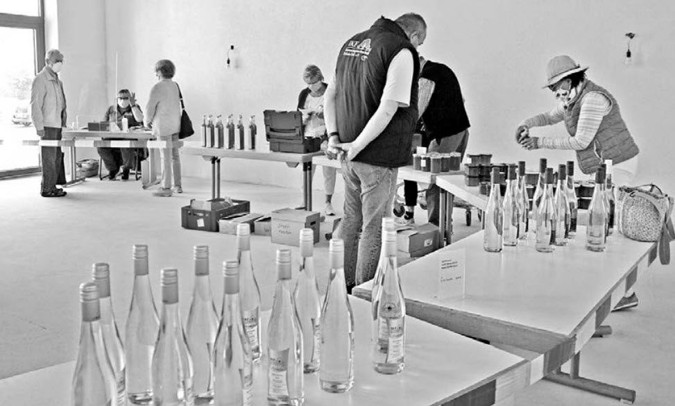 Die Corona-Pandemie hat Auswirkungen auf nahezu alles und jeden im öffentlichen Leben. Nur das "Wie" unterscheidet sich hin und wieder. So musste die Interessengemeinschaft Kirdorfer Feld (IKF) auf den Verkaufstag vor Ostern verzichten, bei dem selbst gemachte Gelees und selbst gekelteter Apfelsaft, -wein oder -secco von Liebhabern der pausbackigen Früchte hätten erstanden werden können. Der konnte nun aufgrund der schrittweisen Lockerungen der Beschränkungen nachgeholt werden, und mit ihm gingen sogar Premieren einher. Zum Beispiel, dass er erstmals im neuen Vereinsheim stattfand, obwohl es sich noch im Rohbau befindet. Darüber hinaus: "Es ist der erste Jahrgang aus dem Neubaukeller", verriet Vereinsvorsitzender Fred Biedenkapp.
